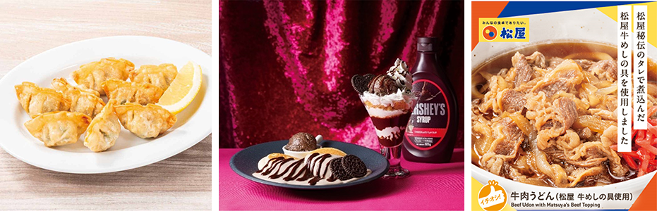 韓国の人気食品ブランド「bibigo(ビビゴ)」、世界中で愛されるチョコレートブランド「HERSHEY‘S(ハーシー)」および牛めし・定食チェーン「松屋」との豪華コラボレーションメニューや有名ラーメン店監修の「〆の一杯」シリーズを追加したほか、ドリンクメニューの拡充なども図りました。