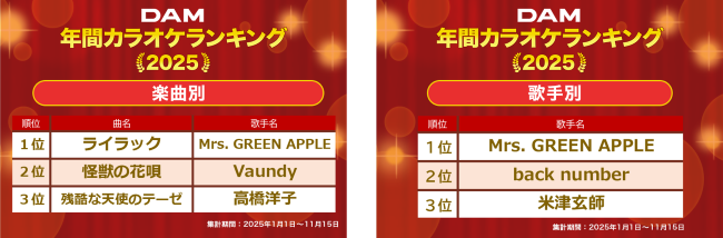 ■DAM 2025年年間カラオケランキング