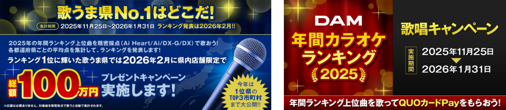 ・”歌うま県No.1”限定100万円プレゼントキャンペーン:https://www.clubdam.com/campaign/collaboration/cp202511_damkaracp.html#utauma
